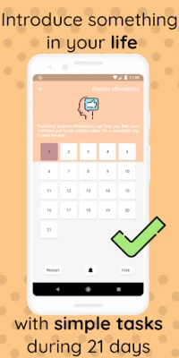 Ge dig själv möjligheten att skapa varaktig förändring med en unik app som guidar dig genom en transformativ 21-dagarsresa. Forskning visar att det tar just denna tid att etablera en ny vana, och denna app är utformad för att göra processen smidig och engagerande. Vare sig du drömmer om en hälsosammare livsstil, en digital detox, att fördjupa din tacksamhet, lära dig ett nytt språk, öka din produktivitet eller stärka ditt självförtroende, finns det en utmaning som väntar på dig. Du kan även skräddarsy din egen resa, och se hur varje dag förvandlar en intention till en integrerad del av ditt liv.