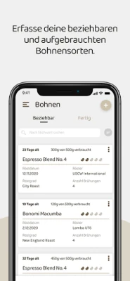 Med Beanconqueror får du fullständig kontroll över hela din kaffehantering. Håll koll på dina bönor med lätthet; importera köpta sorter, skanna in favoriter från rosterier, eller registrera dina egna hemmarostade skapelser. Appen ger dig en överskådlig inventering så att du alltid vet när det är dags att fylla på förrådet. För de som rostar själva, Beanconqueror erbjuder detaljerad spårning av råkaffebönor, batchrostningar och variabler som säkerställer perfekt konsistens. Dina färdiga rostningar överförs smidigt för användning i dina bryggningar. Dessutom har Beanconqueror ett dedikerat område för vatten, där du kan lägga till och spara egna vattenrecept med information om totalhårdhet, natrium, kalcium och magnesium, vilka kan användas för att ytterligare optimera dina bryggningar.