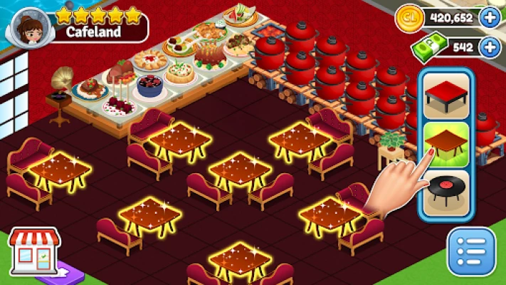I Cafeland skapar du din egen restauranghistoria. Bli en mästerkock, designa ditt 5-stjärniga cafékök och driv en blomstrande verksamhet. Laga hemlagade måltider och servera stadens kunder för att förvandla ditt café till en succé.
