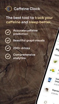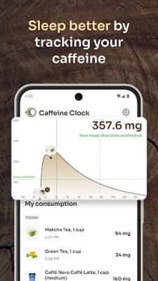 Känn dig pigg när du behöver det och få en god natts sömn med Caffeine Clock. Denna avancerade koffeinmätare är designad för att ge dig full kontroll över ditt intag, vilket leder till smartare val i din vardag. Istället för att bara summera ditt koffeinintag, modellerar Caffeine Clock hur snabbt din kropp absorberar och eliminerar koffein. Appen beräknar därmed en exakt uppskattning av hur mycket koffein som för närvarande finns i ditt system, och hur det kommer att se ut senare under dagen. Du får insikter som hjälper dig att planera din sista kopp för dagen, så att du kan sova tryggt.