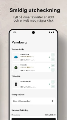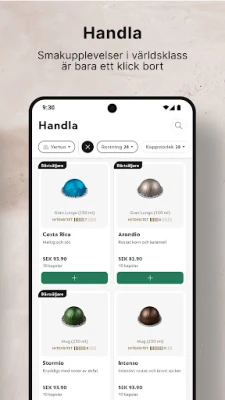 Dyk djupare in i kaffets fascinerande värld. Nespresso-appen är din portal till att utforska distinkta ursprung och spännande smaker från världens alla hörn, allt utan att lämna hemmet. Utöver ett brett utbud av kaffe hittar du även de senaste maskinerna och stilfulla tillbehören som förhöjer varje kaffestund till en personlig upplevelse. Återbeställ enkelt dina favoriter för att säkerställa att din kaffebar alltid är välfylld och att du aldrig står utan din önskade brygd.