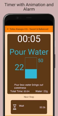 Trött på att kaffet smakar olika varje gång? Denna app förvandlar din kaffebryggning till en konstart med oslagbar precision. Följ tydliga, animerade steg som synkroniseras med exakta timers och diskreta ljudvarningar, vilket eliminerar alla gissningar. Upplev den tillfredsställande smaken av ett konsekvent, perfekt bryggt kaffe, varje gång.