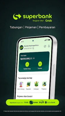 Upplev Superbank: lönsamma, säkra och enkla banktjänster. Få hög ränta på ditt sparande, upp till 10%, och flexibla lån. Hantera dina pengar smidigt med avgiftsfria överföringar och koppla till Grab för extra förmåner. Regleras av OJK, BI och LPS.