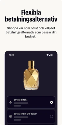 Upptäck Klarna, din flexibla betallösning. Välj att betala direkt, om 30 dagar, eller dela upp. Använd Klarnakortet överallt och få upp till 10% cashback hos hundratals butiker. Spara smart med Klarnas sparkonton och samla alla dina bonuskort. Enkel ekonomi i en app.