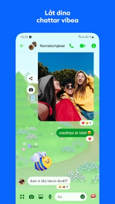 Messenger, utvecklad av Meta, omdefinierar hur du håller kontakt med dina nära och kära, globalt och utan att förlita dig på ett telefonnummer. Delta i meningsfulla konversationer, ring röstsamtal eller dela med dig av dina tankar till vänner och familj på ett ögonblick. Förhöj din upplevelse med Meta AI*, din intelligenta partner som är redo att svara på frågor, erbjuda insikter och hjälpa dig att utforska kreativa möjligheter genom att enkelt skapa, redigera och animera bilder direkt i appen.