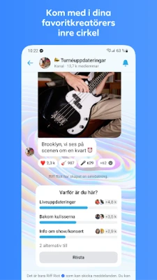 Få en djupare koppling till ditt närområde genom att engagera dig i samhällen, skolor och intressegrupper. Håll dig uppdaterad med dina favoritkreatörer genom att följa deras exklusiva sändningskanaler för autentiska, vardagliga insikter. Fånga och dela flyktiga ögonblick i Händelser, med foton och videor som försvinner efter 24 timmar, eller dela snabba tankar som statusuppdateringar. Uttryck dig bortom ord med ett rikt urval av animerade dekaler, GIF-filer och reaktioner. Anpassa varje chatt med dynamiska teman inspirerade av populära artister och högtider, och förvandla dina konversationer till en visuell upplevelse.
