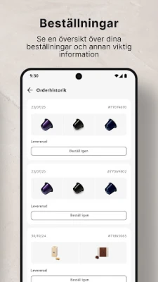 Upplev en oöverträffad enkelhet i din kafferitual med Nespresso-appen. Från det ögonblick du får sug efter din perfekta kopp, erbjuder appen en smidig väg till upptäckt och inköp. Utforska ett noggrant utvalt sortiment av kaffesorter och låt dig inspireras av nya smaker som matchar din unika preferens. Med bara några få tryck är din nästa favoritkaffe på väg, direkt till dig, vilket gör hela processen både snabb och bekymmersfri.