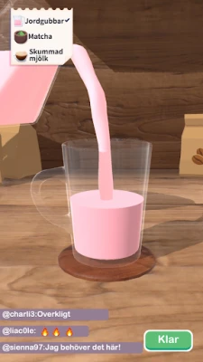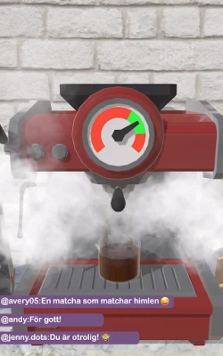 Dina kunder står redo, med olika önskemål som testar din förmåga att matcha smaker. Välj de rätta kombinationerna för att behålla deras lojalitet innan de söker sig till en annan barista. Och när de verkligt betydelsefulla kunderna, VIP-gästerna, dyker upp, höjs insatserna! De förväntar sig inget mindre än extraordinärt. Tänk dig regnbågsfärgat bubbelte eller skimrande is med guldflingor, serverat i exklusiva koppar. Har du den precision och finess som krävs för att överträffa även deras vildaste förväntningar?
