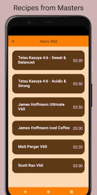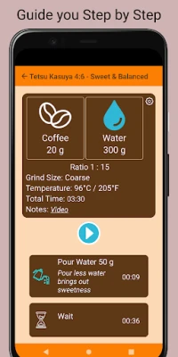 Trött på att kaffet smakar olika varje gång? Denna app förvandlar din kaffebryggning till en konstart med oslagbar precision. Följ tydliga, animerade steg som synkroniseras med exakta timers och diskreta ljudvarningar, vilket eliminerar alla gissningar. Upplev den tillfredsställande smaken av ett konsekvent, perfekt bryggt kaffe, varje gång.
